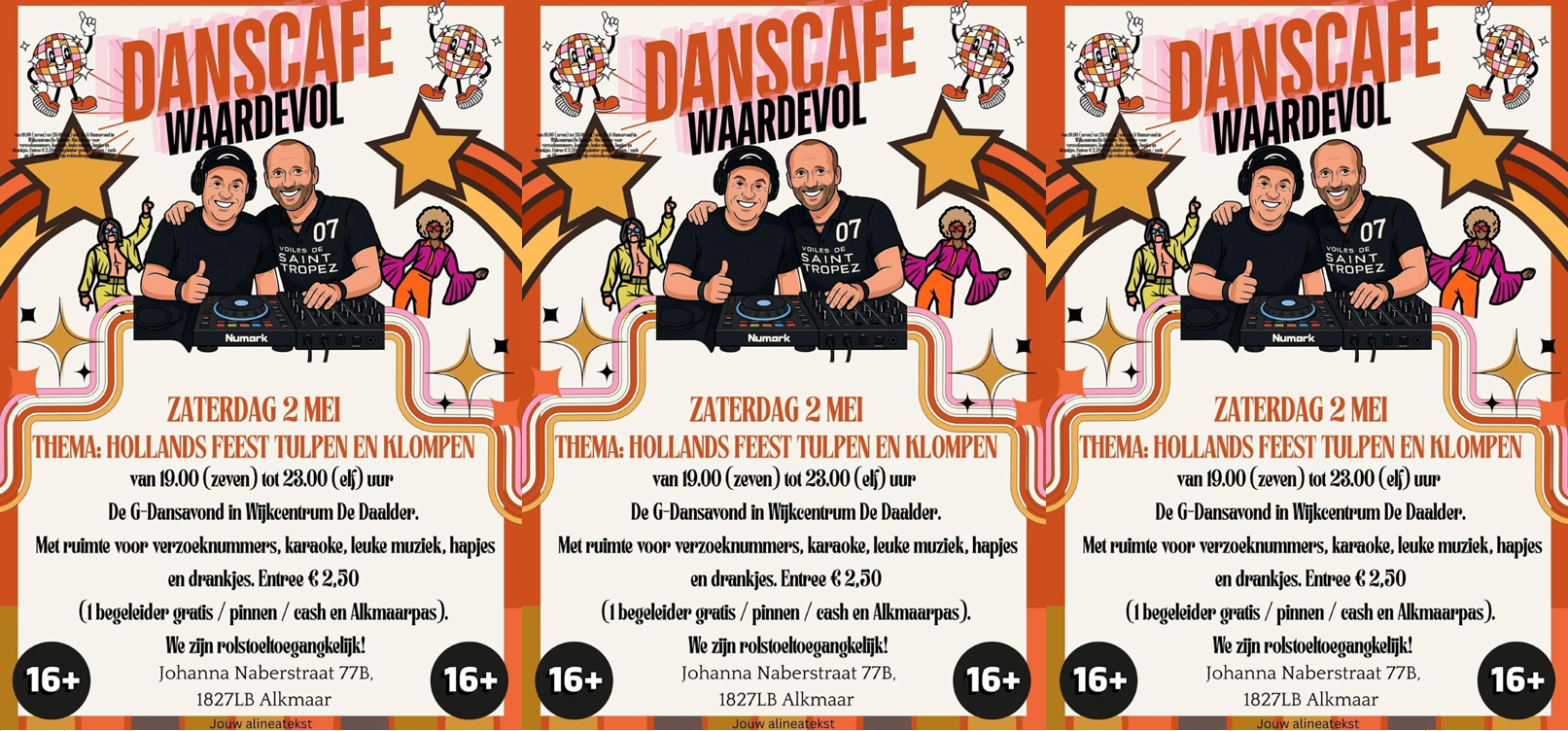 De G-dansavond (16+) in Wijkcentrum De Daalder - Thema: Hollands feest tulpen en klompen. Met ruimte voor verzoeknummers, karaoke, leuke muziek, hapjes en drankjes. Entree € 2,50 (1 begeleider gratis, pinnen/cash/Alkmaarpas) Rolstoeltoegankelijk.
